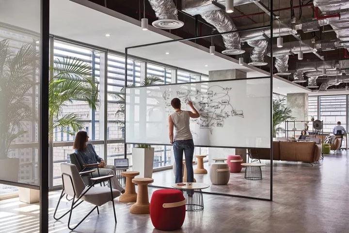 7、可書寫表面。可書寫表面現(xiàn)在有各種形式和尺寸。現(xiàn)在出現(xiàn)了可輕便移動的書寫白板隔斷,成為開展頭腦風暴和戰(zhàn)略研討會時臨時或永久的墻體,這樣的設計讓空間更具多變性。