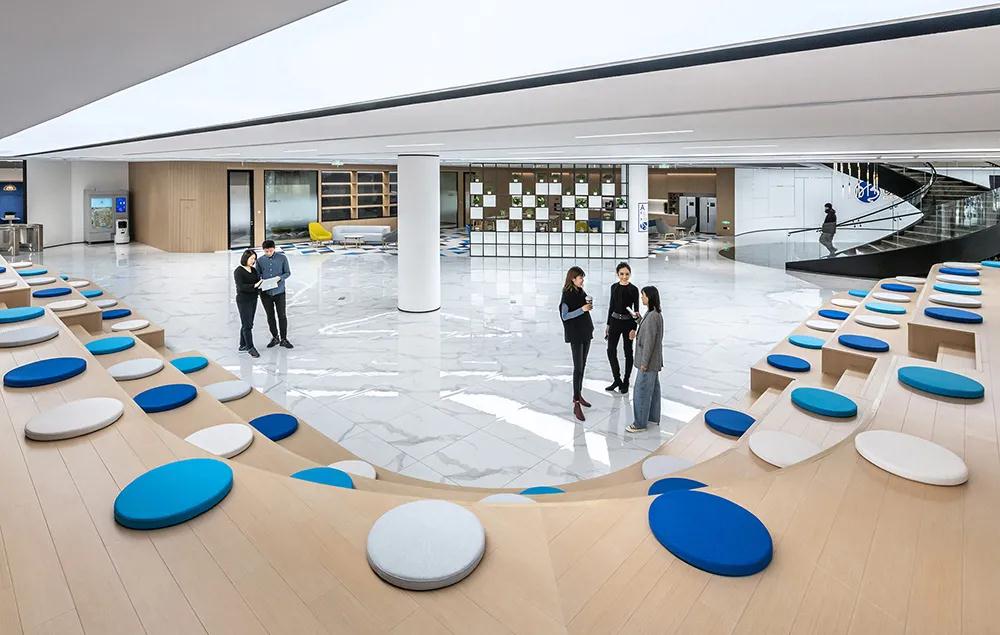 整體空間設(shè)計以井為標(biāo)準(zhǔn),兼顧空氣、水、熱舒適、采光、心理健康等因素,使用更多天然材料,營造有利于健康高效工作的環(huán)境。多功能“明天廣場”配備樓梯空間和咖啡廳,讓員工在半正式的氛圍中交流、參加會議、工作 正門附近的社交網(wǎng)絡(luò)和螺旋樓梯增強(qiáng)了上下的可達(dá)性地板。一樓有大理石臺階和精心規(guī)劃的綠色植物,營造出活潑的氛圍。懸掛式螺旋水晶吊燈與螺旋梯相得益彰,象征著不斷崛起、不斷創(chuàng)新的企業(yè)文化。以城市規(guī)劃理念為基礎(chǔ),結(jié)合穆在建筑、空間戰(zhàn)略規(guī)劃、室內(nèi)設(shè)計、工程設(shè)計等專業(yè)領(lǐng)域的經(jīng)驗(yàn),室內(nèi)空間設(shè)計打造以員工為中心、促進(jìn)溝通、與品牌形象相匹配的辦公室全球企業(yè)和人工智能領(lǐng)導(dǎo)者,我們強(qiáng)烈支持明略創(chuàng)造“人機(jī)合作更美好世界”的愿景。